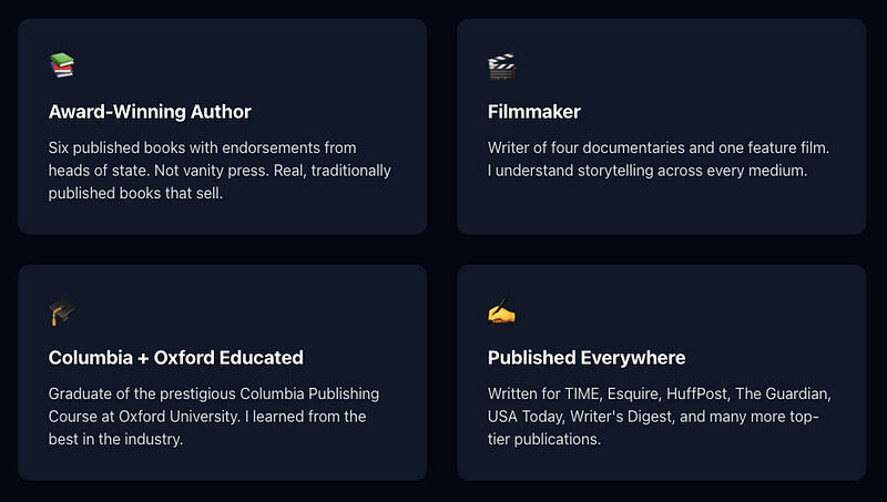 Let Me Guess Where You Are Right Now…You’ve got a book inside you. Maybe you’ve already started writing it. Maybe you’ve finished a manuscript but have no idea what to do next.You’ve Googled “how to get published” a hundred times and gotten a hundred different answers. You’ve scrolled through Twitter threads, watched free YouTube videos, and maybe even bought a course or two that left you feeling more confused than when you started.You’ve thought about querying agents but the process feels like shouting into a void. You’ve considered self-publishing but worry your book won’t be taken seriously. You’ve wondered if traditional publishing is even possible without connections.Meanwhile, last year readers bought more than 2 billion books.Where’s yours?The Real Cost of WaitingEvery month you spend “figuring it out on your own” is another month your book isn’t on shelves. Another month your ideas aren’t reaching readers. Another month of lost royalties, lost speaking opportunities, and lost momentum.I know because I lived it.I spent years banging my head against the wall trying to get published:-Years of rejection letters. (Over 700 rejections)-Years of confusion about the process.-Years of wondering if I was doing it all wrong.And here’s what I discovered after investing over $25,670 in my writing career — including $10,000 for one course and $1,500 for a single hour of consulting:That investment has paid itself back more than 20 times over.The question isn’t whether you can afford to invest in your writing career. The question is:Can you afford not to?Who I AmI’m not some “guru” who wrote one eBook and now sells courses.I’ve made $500+K by writing and will show you exactly how.Here’s my track record: